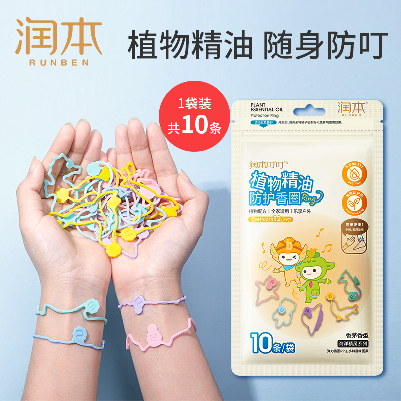 商品名称:(中百)润本叮叮 植物精油防护香圈(海洋精灵系列)10条装 润本(RUNBEN)叮叮植物精油香圈儿童防护手环10个装